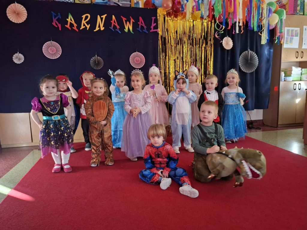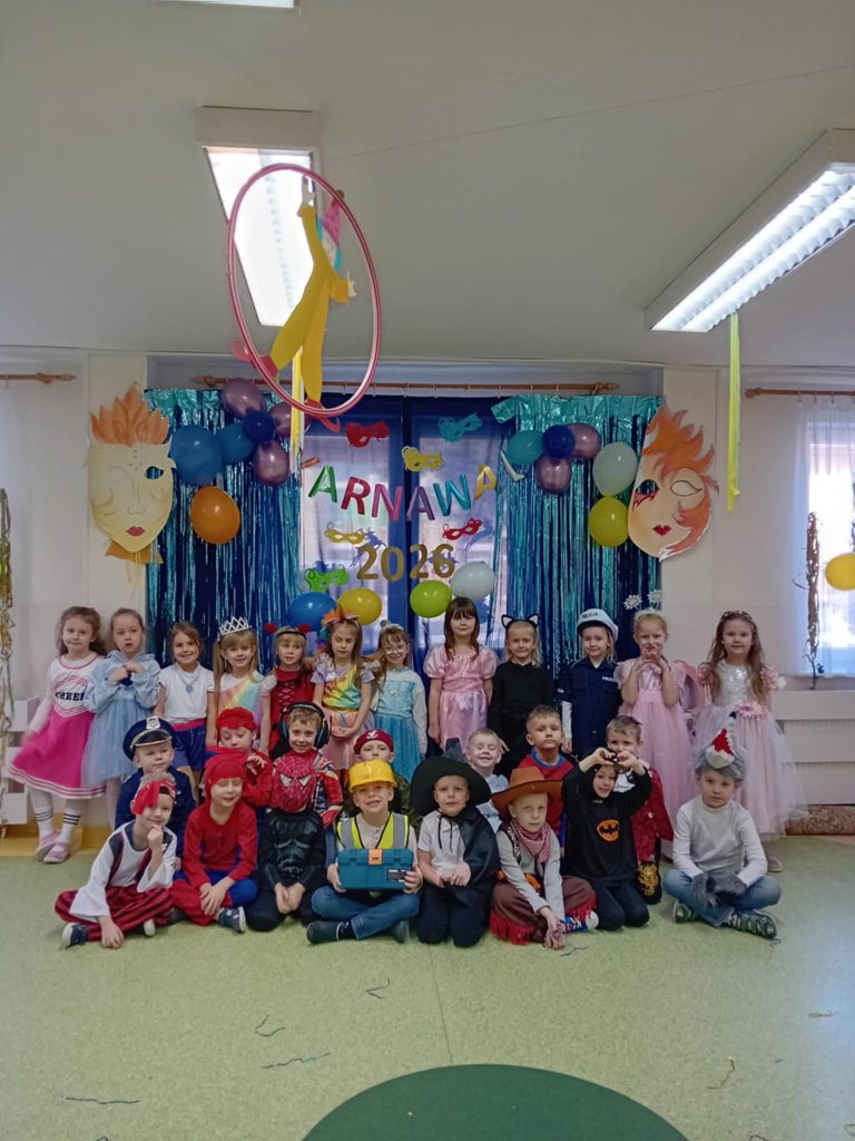 W dniu 3 luty odbył się bal karnawałowy dla dzieci ze wszystkich grup przedszkolnych. Na tę okazję sale zostały udekorowane kolorowymi balonami, girlandami oraz elementami tematycznymi, wprowadzającymi radosny, karnawałowy nastrój.