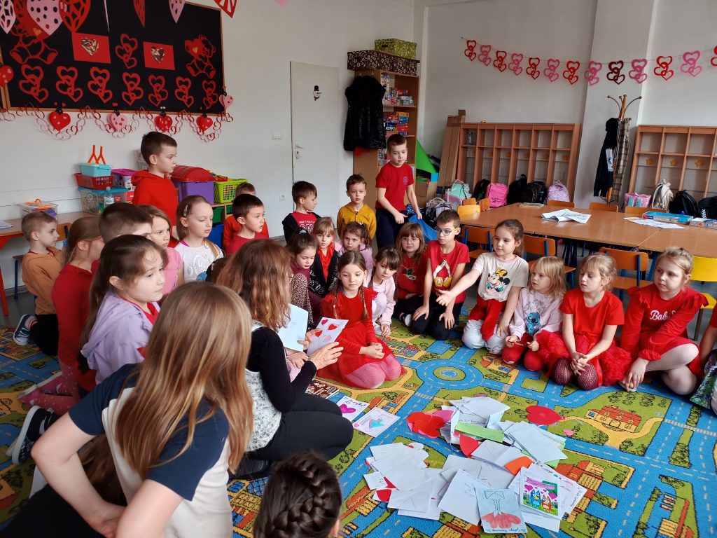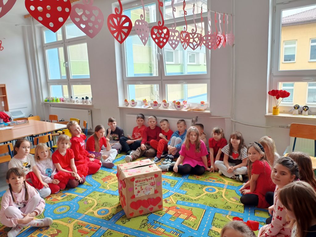 Zorganizowano pocztę walentynkową dla dzieci, które wykonywały kartki walentynkowe z życzeniami i pozdrowieniami. Wspólnie dekorowaliśmy salę świetlicową czerwonymi serduszkami Odbyły się pogadanki na temat pojęć takich jak: sympatia, przyjaźń, zakochanie, miłość.